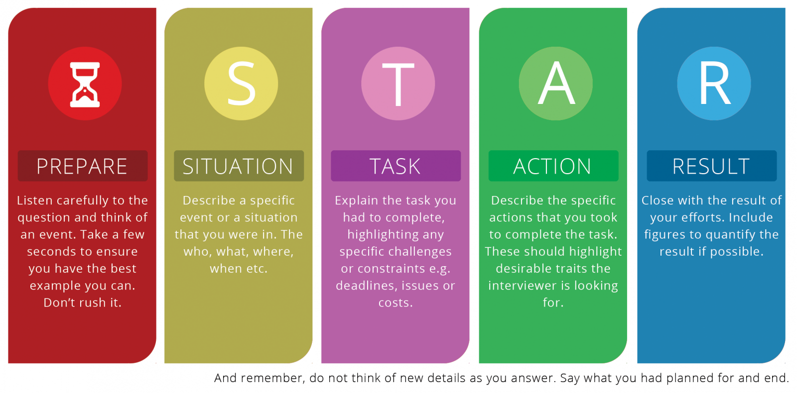 The STAR method helps you craft well-structured answers by breaking them down into four key components: